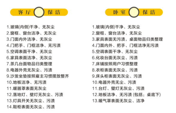 日常保洁含:客卧地面柜面清洁,家具家电表面清洁,客厅卧室内窗清洁,全程不挪动家具
